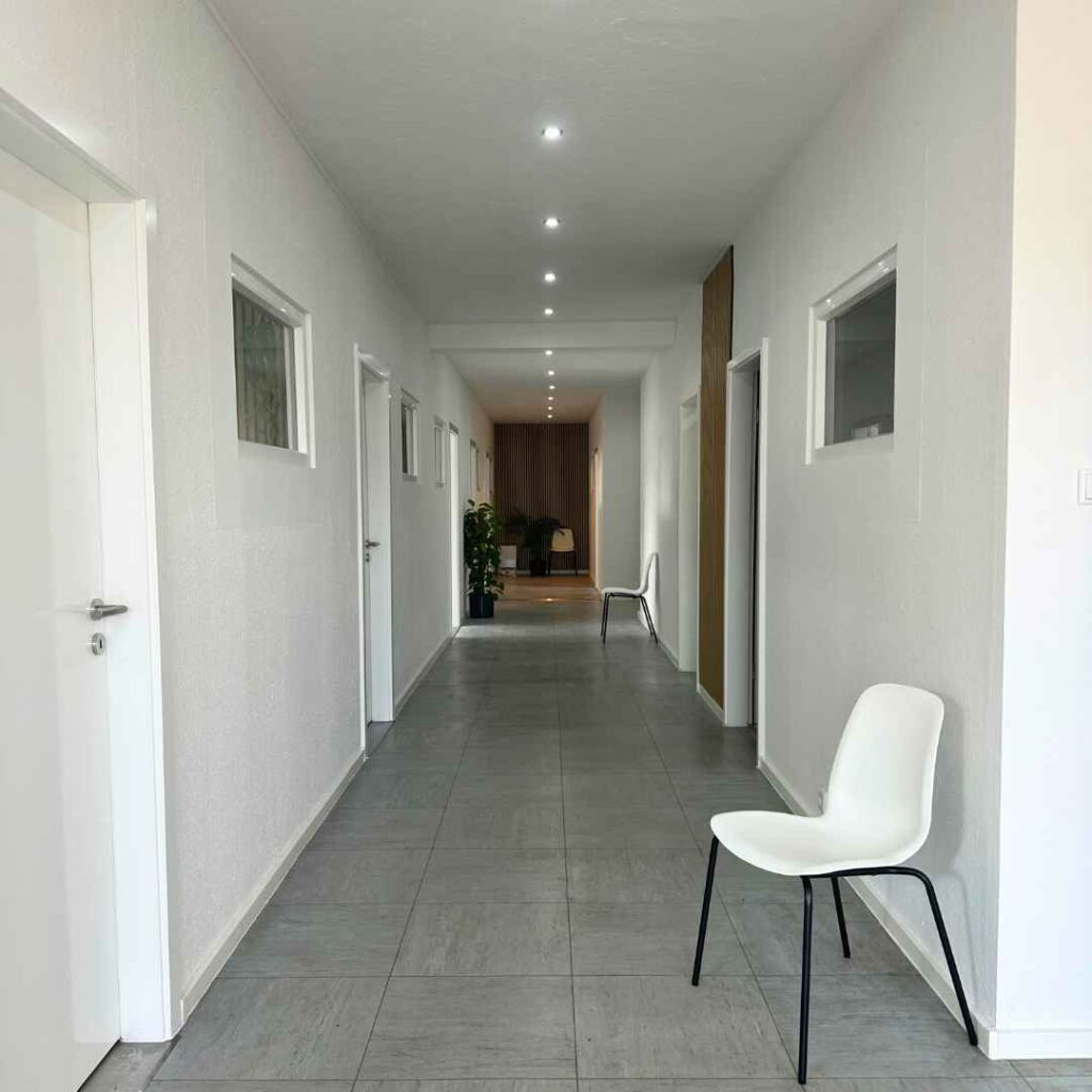 Zusätzliche Wartemöglichkeiten gibt es im Flur.