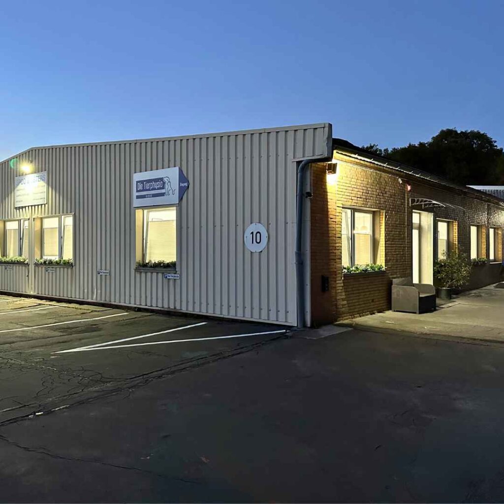 Parkplätze sind direkt am Gebäude zu finden. Sie sind mit einem Tierphysio-Schild gekennzeichnet.