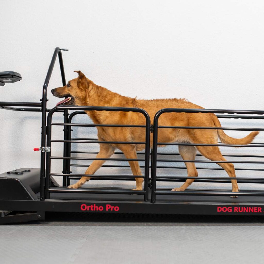 Das orthopädische Laufband unterstützt, wenn die Anforderungen steigen, oder andere Gründe das Training im Wasser nicht zulassen.