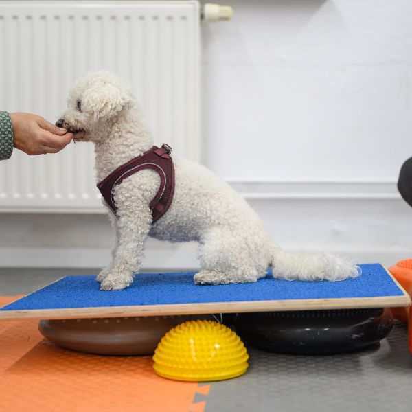 Der Muskelaufbau mit dem Unterwasserlaufband wollte nicht so recht gelingen. Aber die Übungen im Trainingsraum machten Zedra Freude und zeigten Wirkung! Mit Balancepads, Wackelkissen und Sitz-Steh-Erhöhungen wurde sie immer stärker und agiler!