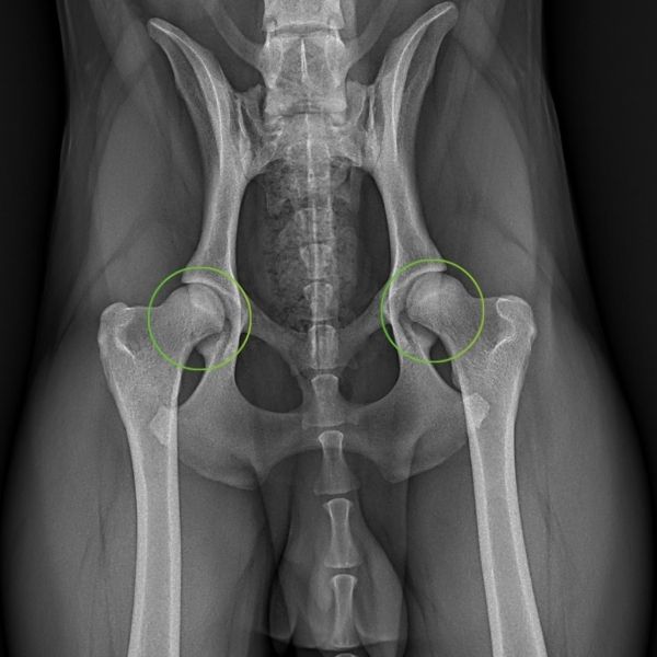 Denn nicht nur die Hüfte selbst ist betroffen: Der restliche Körper kompensiert diese Fehlbelastung dauerhaft mit. Zedra kann ihren Schwanz nicht höher als waagerecht heben, die Rücken- und Hinterbeinmuskulatur ist fest und verspannt. Sie steht oder liegt am liebsten, Sitzen mag sie nicht. Zuhause verlässt sie kaum ihr Körbchen, weil selbst normale Alltagsbewegungen für sie anstrengend oder unangenehm sind.